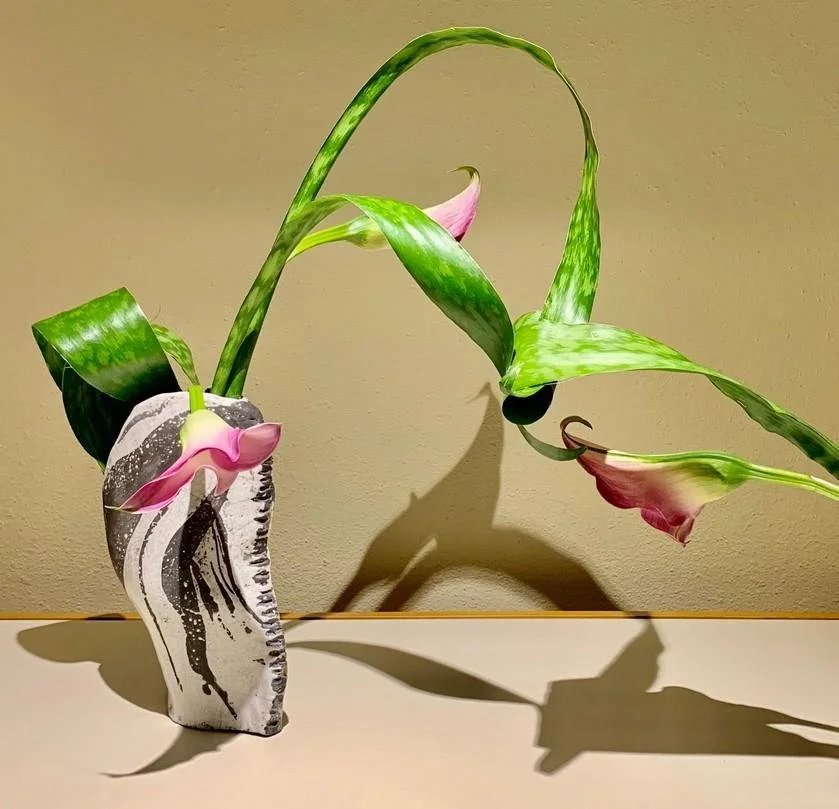 Fondée au début du 20ème siècle, l’école Sogetsu est inspirée par les courants de l’art moderne. Elle révolutionne l’approche traditionnelle et classique de l’ikebana. Son style est une sculpture vivante qui peut s’exprimer avec parfois d’autres matériaux que les fleurs.